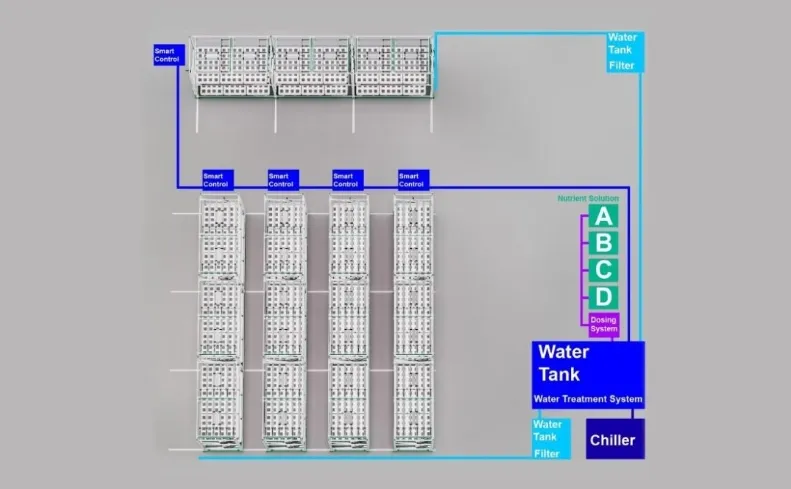 The system is a vertical hydroponic solution rooted in reliable Nutrient Film Technique (NFT) technology. It brings forward a significant innovation that transforms the way growers approach indoor multi-layered lettuce cultivation.